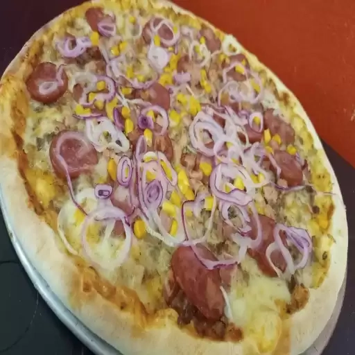 Calabresa, Mussarela, Bacon, Cebola, Tomate.